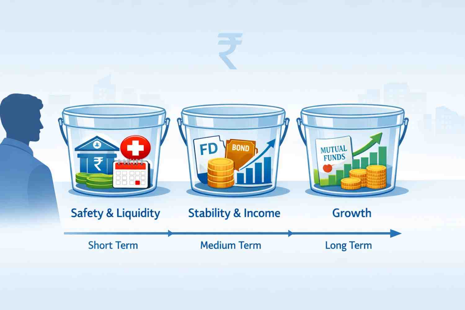 This is where the 3-bucket portfolio in India framework becomes extremely relevant. It introduces clarity by organising money based on when it will be needed, not on how markets are performing. By separating today’s needs from tomorrow’s goals, investors can stay disciplined even during volatile periods.